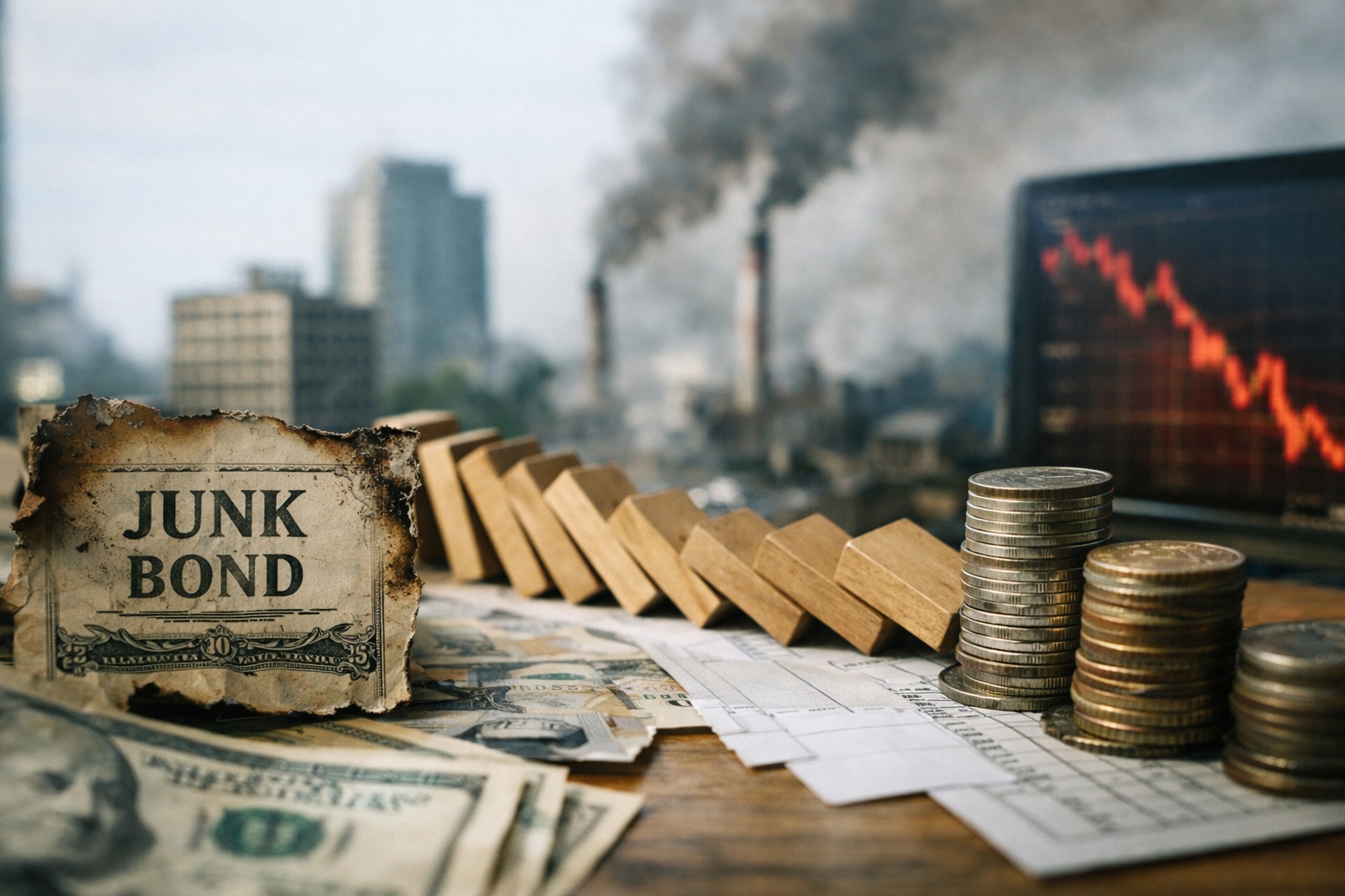 ジャンク債(ハイイールド債)は、信用格付けが投資適格(BBB-相当)未満の企業が発行する社債です。格付けが低い分、投資家は高い利回りを要求します。つまりジャンク債の価格は「この企業は利息と元本を返せるか?」という疑いの強さに敏感です。