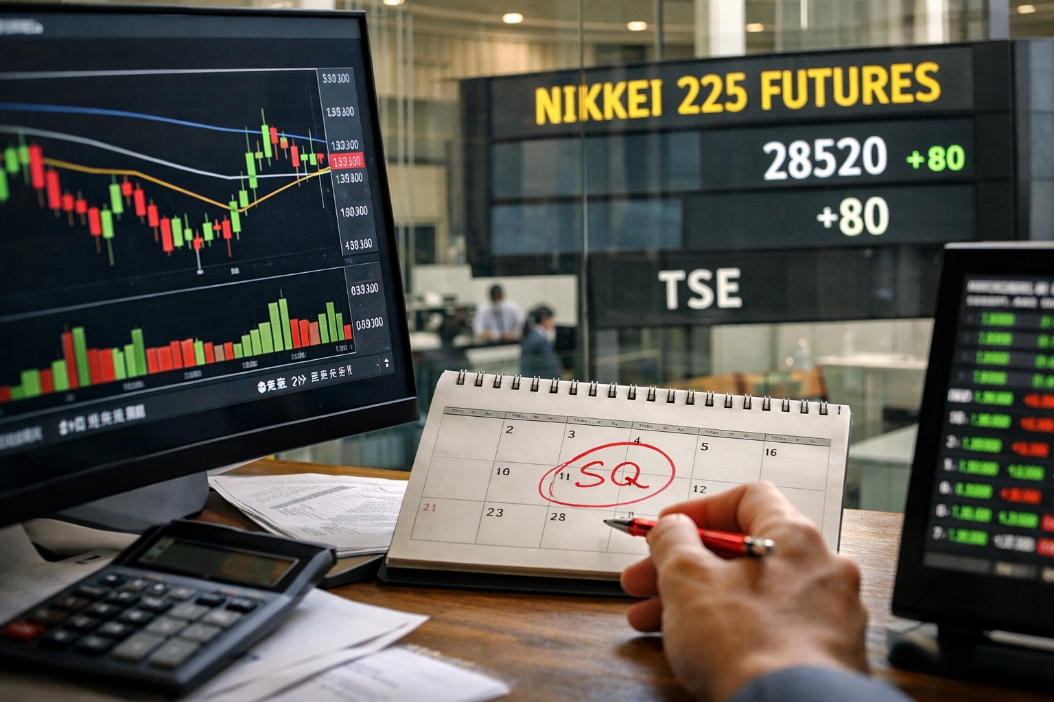 SQ(特別清算指数)は、先物・オプションの最終決済に使われる“基準の値段”です。日本株では日経平均株価先物や日経225オプションに絡み、SQ算出日(多くは第2金曜)の寄り付きに向けて需給が急変しやすくなります。