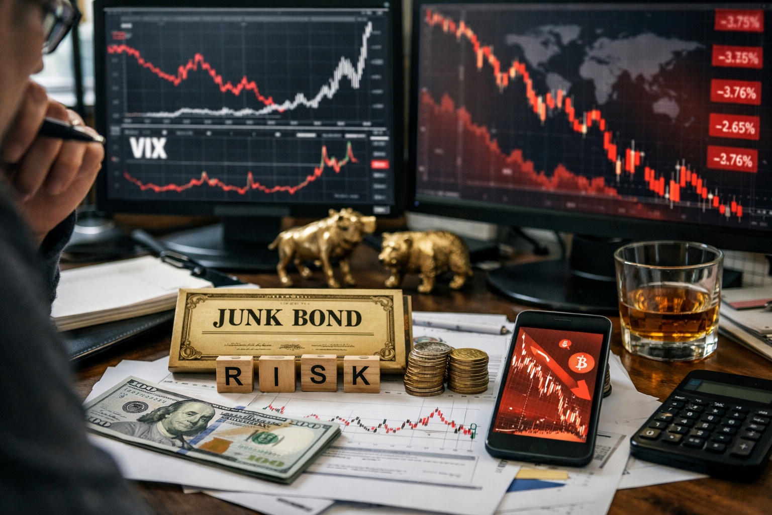 ジャンク債(ハイイールド債)の利回りが急騰する局面は、投資家が「信用リスク(デフォルトや資金繰り悪化)」を急に怖がり始めたサインです。株式市場はニュースや決算、政策で動いているように見えますが、実は“信用”の劣化が先に進み、そのあと株や暗号資産に波及するパターンが少なくありません。