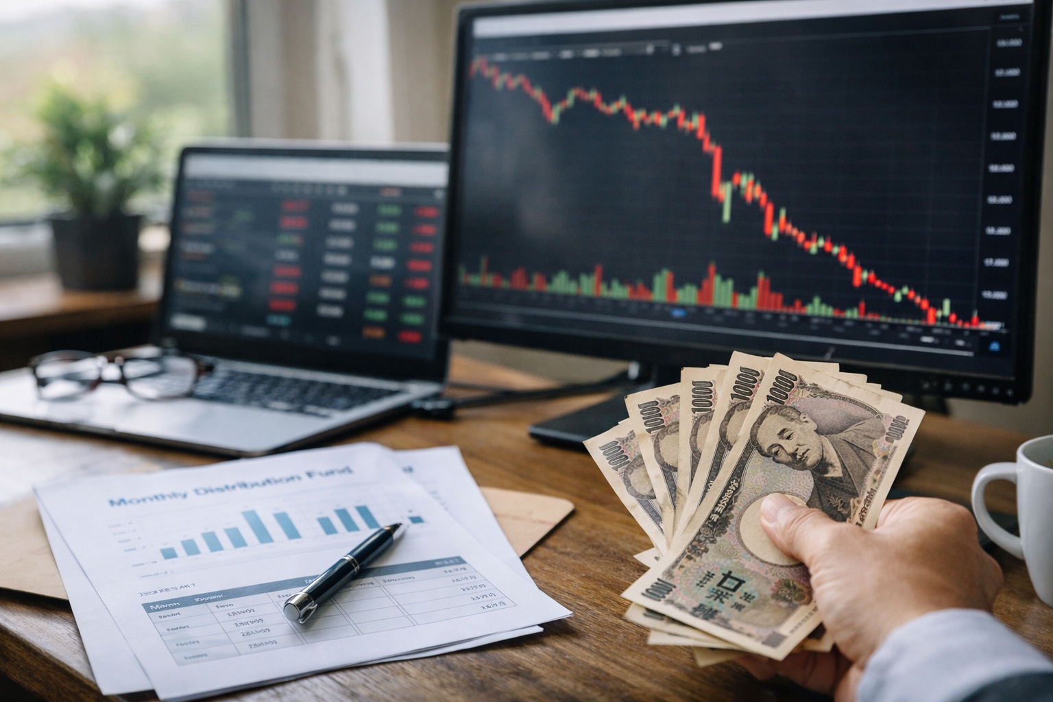 毎月分配型投信は、名前の通り毎月分配金を出す設計の投資信託です。ここで最初に理解すべきなのは、分配金が多いことと、運用がうまいことは別だという点です。分配金は利息や配当などの収益から出る場合もありますが、基準価額の一部を取り崩して支払われることもあります。受益者から見れば毎月お金が入るのでわかりやすい商品ですが、運用資産の純資産総額が減りやすく、解約が積み上がると売却圧力が目に見えない形で市場に出ます。
