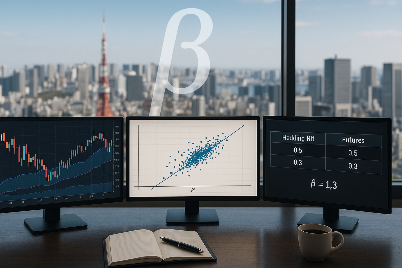 - ヘッジ比率の基礎:個別株ロングを指数先物やETFで中和する時、必要ショート金額は概ね「ポジション金額×β」で近似できます。