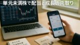 「まとまった資金がなくても、日本株の配当と成長を取りにいく」。その現実的な解が、単元未満株(S株/いちかぶ/ワン株 等)を使った配当再投資×時間分散です。本稿では、約定仕様やコスト構造のクセを踏まえつつ、月1万円前後から運用を立ち上げ、継続的に拡張できる設計図を提示します。個別銘柄名の推奨ではなく、考え方・手順・管理指標に焦点を当てています。