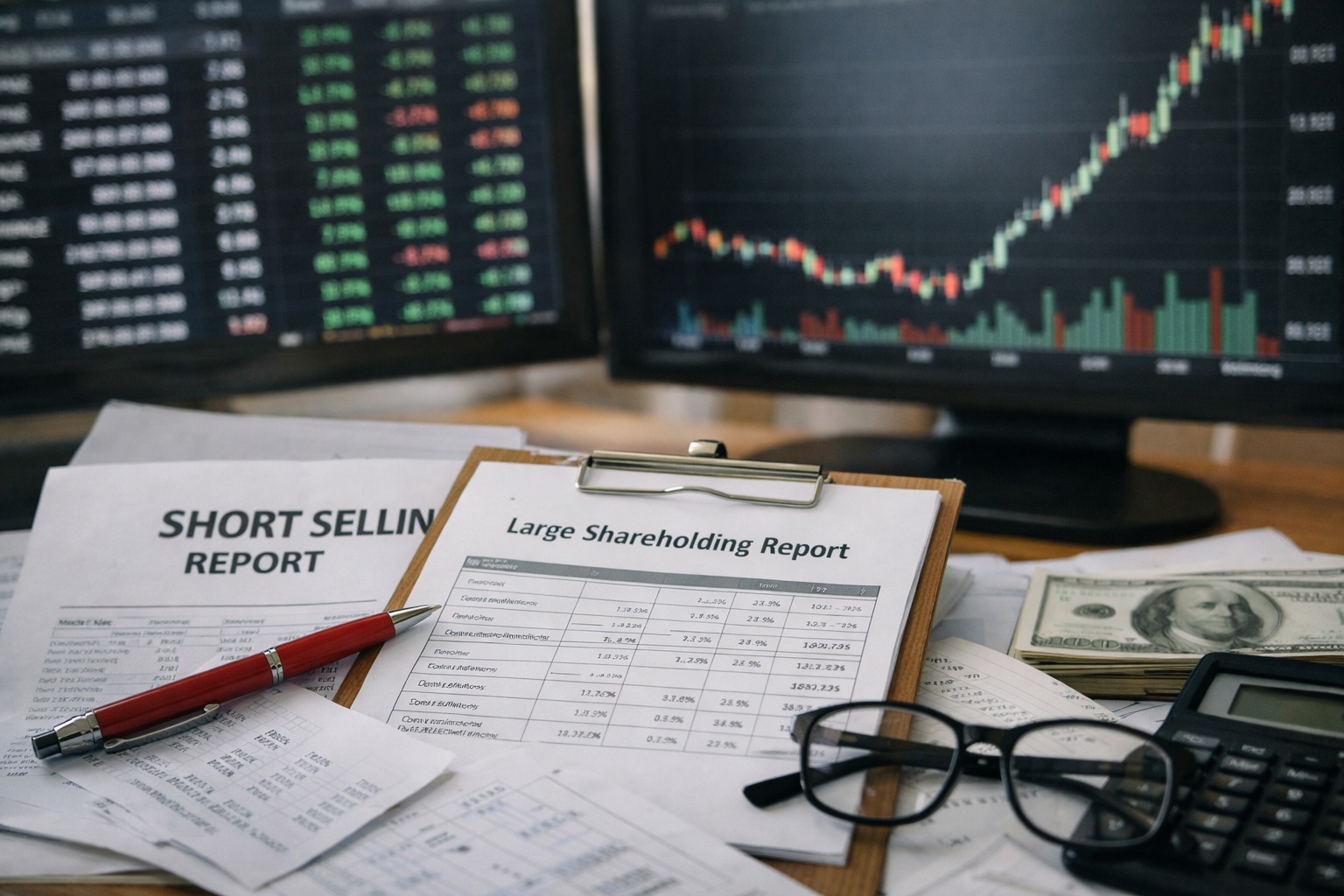 踏み上げ相場は、派手なニュースよりも需給の構造で起きます。大量保有報告書は買い方の主語を、空売り開示は売り方の燃料を、信用需給は時間の圧力を示します。この3点が揃い、板・歩み値で買いの質が変わったとき、踏み上げの初動が見えてきます。