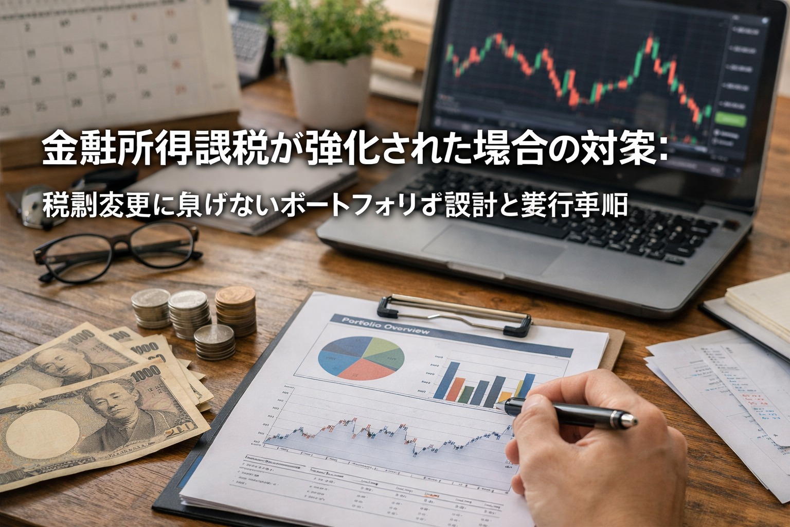 「金融所得課税が上がるかもしれない」という話題は、投資家にとって“市場リスク”ではなく“制度リスク”です。価格は読めなくても、制度変更はルールが変わるだけなので、準備と運用で被害を最小化できます。ここでは、課税強化のパターンを分解し、個人投資家が現実的に実行できる対策を、口座設計・商品選択・損益管理・資産移転の順に具体化します。