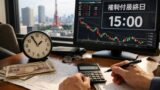 基本は、除外銘柄のショートは「反映日当日の引け前後」に寄せます。理由は、指数連動の売りが“最も確度高く出る”のがその時間帯だからです。