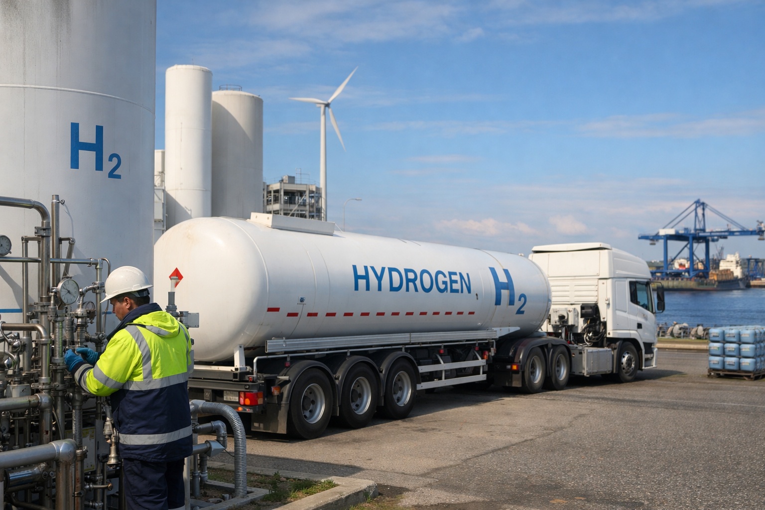 圧縮水素:高圧(例:350~700bar)に圧縮して運ぶ方法。圧縮に電力がかかり、容器やバルブも高コスト。近距離の陸上輸送や定置貯蔵で使われやすい。