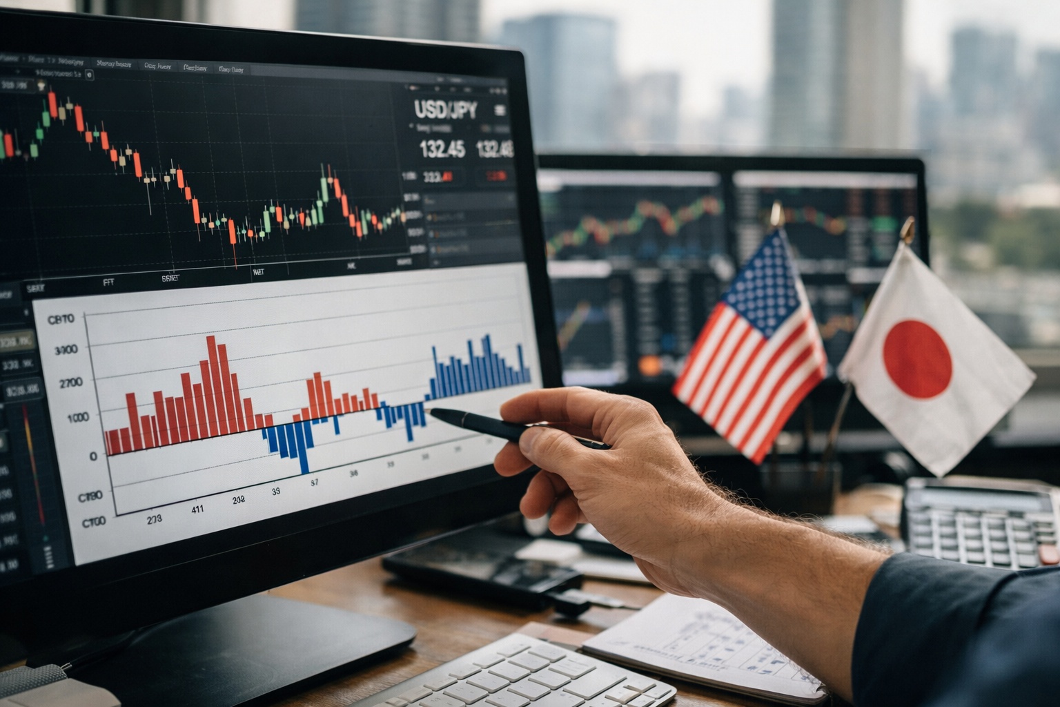 ドル円は実務上、「ドル要因(米金利・米景気・米株)」と「円要因(日銀政策・日本の貿易収支・リスクオフ)」が綱引きします。ここでIMMが効きやすいのは、円が“ファンディング通貨”として使われやすいからです。金利差が広がると、円を売って高金利通貨を買う取引が積み上がりやすく、円ショートが混雑します。