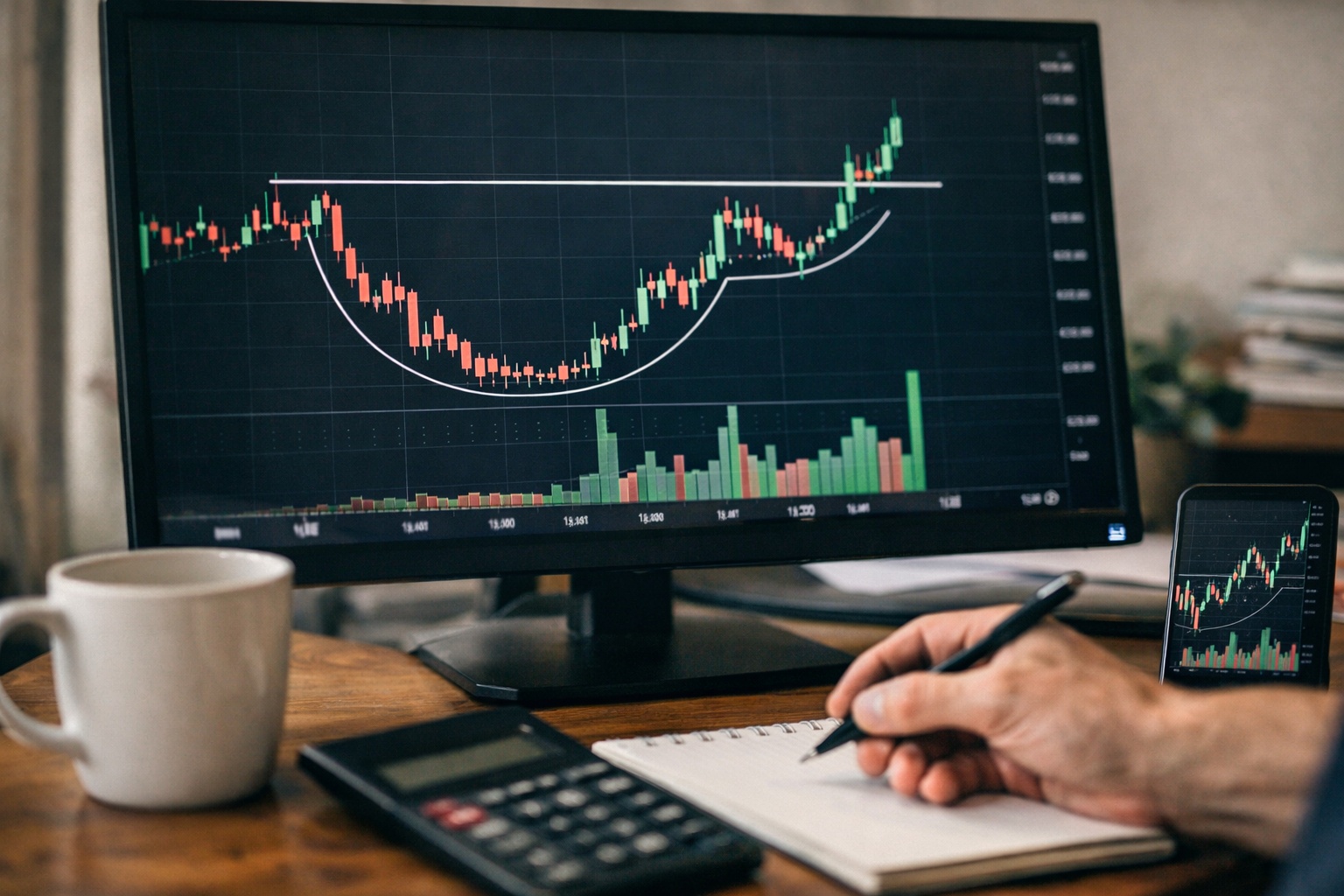もう一つ大事なのは、「形が完成する前に先回りしない」ことです。カップができそう、ハンドルになりそう、もう少しで抜けそう。この段階で買うのは、パターン投資ではなく願望投資です。完成を待つのは退屈ですが、その退屈に耐えられる人のほうが、長い目で見て資金が残ります。