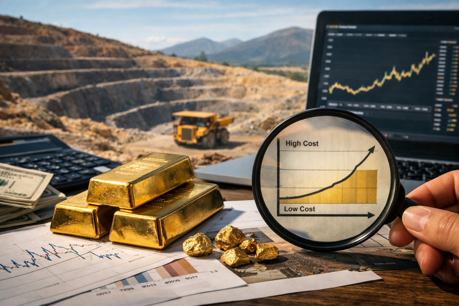 産金株の強弱を分ける本質は、金の方向性よりも「コスト曲線上の位置」です。金鉱山は、同じ1オンスでも採掘難易度が違い、AISCが会社ごとに大きく異なります。金価格が上がる局面では、低コスト企業は確かに強いのですが、相場の“中盤”では中コスト帯の企業が一番伸びやすいことがあります。