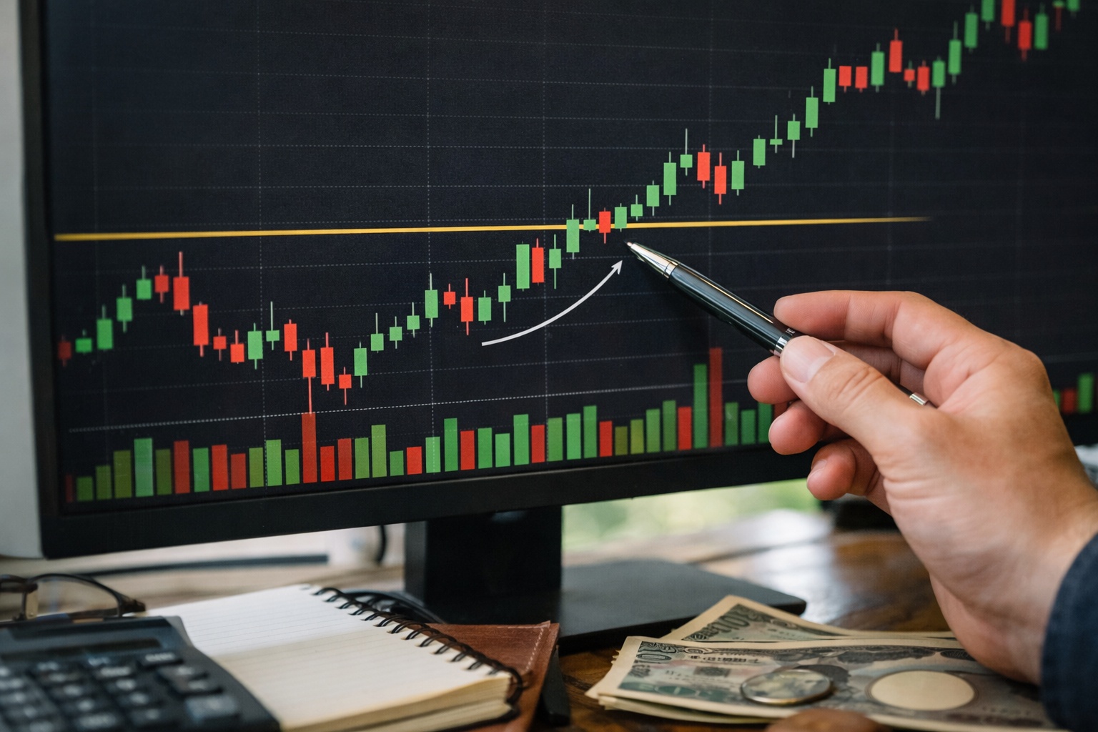 初心者は「出来高が多いほどいい」と単純化しがちですが、局面ごとに意味が違います。突破日に増えるのは良いですが、押し目の最中に巨大な出来高を伴う陰線が出たら危険信号です。それは単なる押しではなく、上で掴んだ人の投げ売りや大口の処分が進んでいる可能性があります。出来高は単体で判断せず、ローソク足の位置とセットで見る癖をつけるべきです。