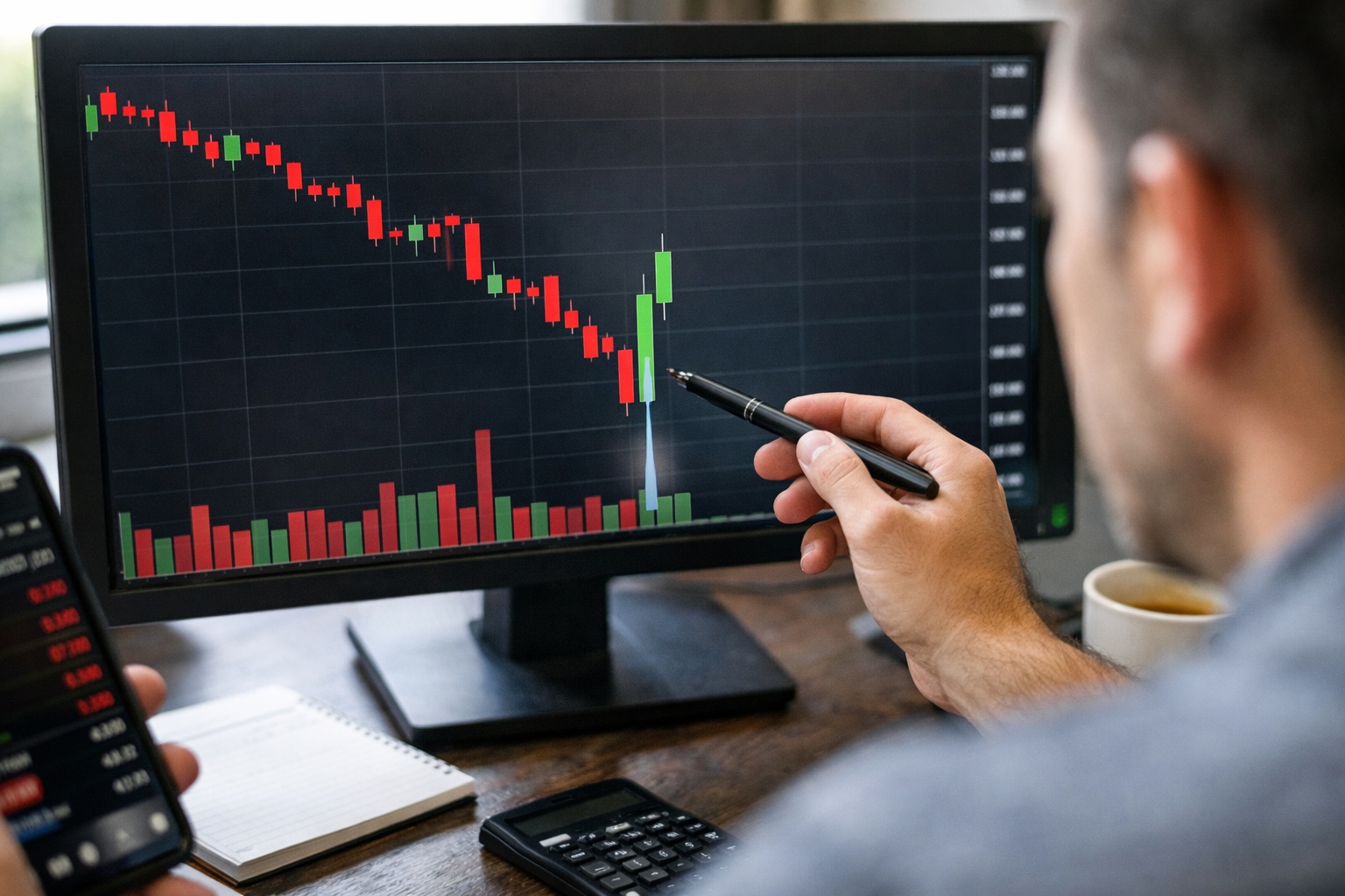 たとえば、100万円の運用資金で一回のトレード損失を最大2万円までに抑えると決めるなら、損切り幅が5%なら40万円分、損切り幅が2%なら100万円分までが理論上の上限です。値動きの荒い急落銘柄で全力買いをしてはいけない理由はここにあります。技術より先に、サイズ管理が重要です。
