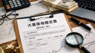 株式投資 大量保有報告書(5%ルール)を読み解く:大株主の買い増しを追随して優位性を作る実践ガイド 大量保有報告書(いわゆる5%ルール)を、個人投資家が売買判断に落とし込むための読み方・分類・初動の確認手順・失敗パターン・実践的なリスク管理まで、具体例ベースで体系化します。 2026.02.04 株式投資