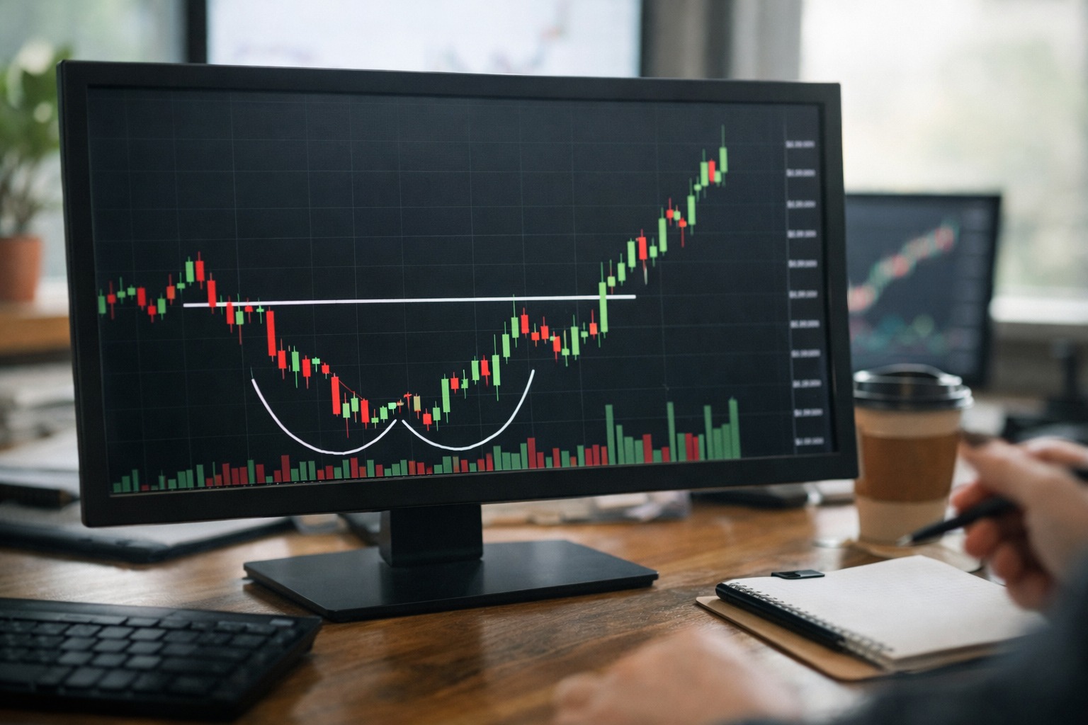 ローソク足で言えば下ヒゲ、出来高で言えば投げが一巡して減衰するなどです。重要なのは「底値圏での売りが弱まった」こと。ここがないと、ネックライン到達前に崩れる確率が上がります。